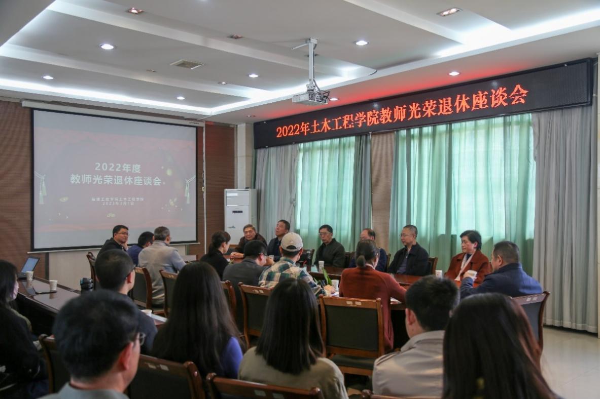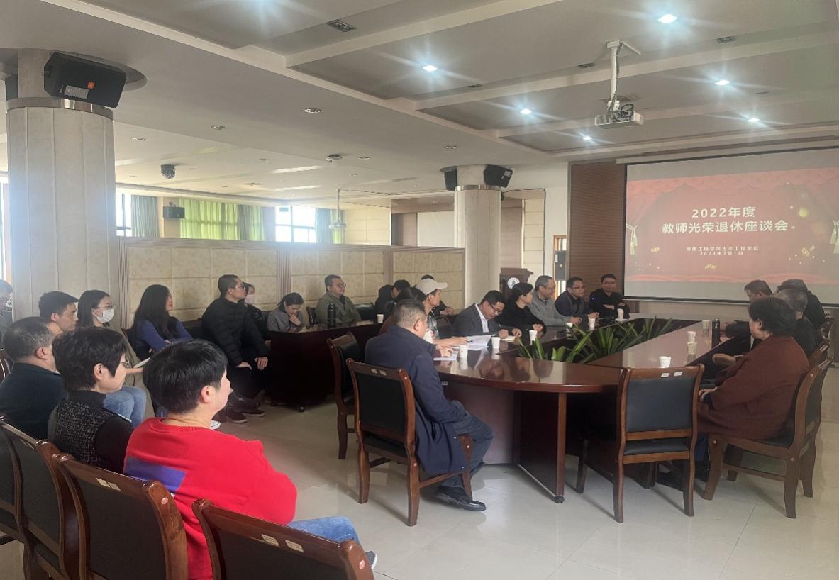 2023年3月1日下午,福建工程學(xué)院土木工程學(xué)院為2022年度退休教師魏瑞演、田建平、簡洪鈺、趙冬香、謝建暉、畢賢順等7位教師舉辦光榮退休座談會。退休教師、學(xué)院黨政班子、工會以及教師代表參加了座談會。座談會流程包括了黨政班子代表致辭、觀看學(xué)院宣傳片、頒發(fā)紀(jì)念品、退休教師感言、交流等環(huán)節(jié)。