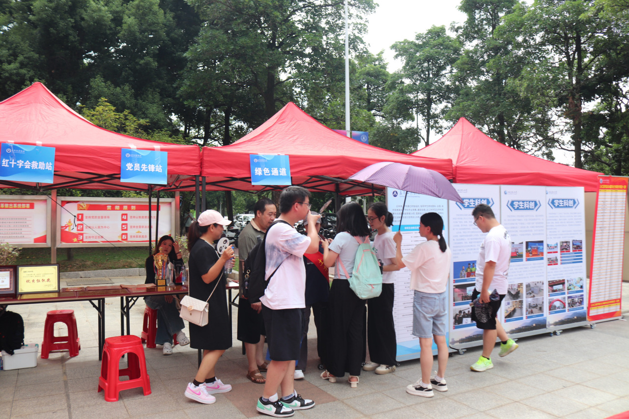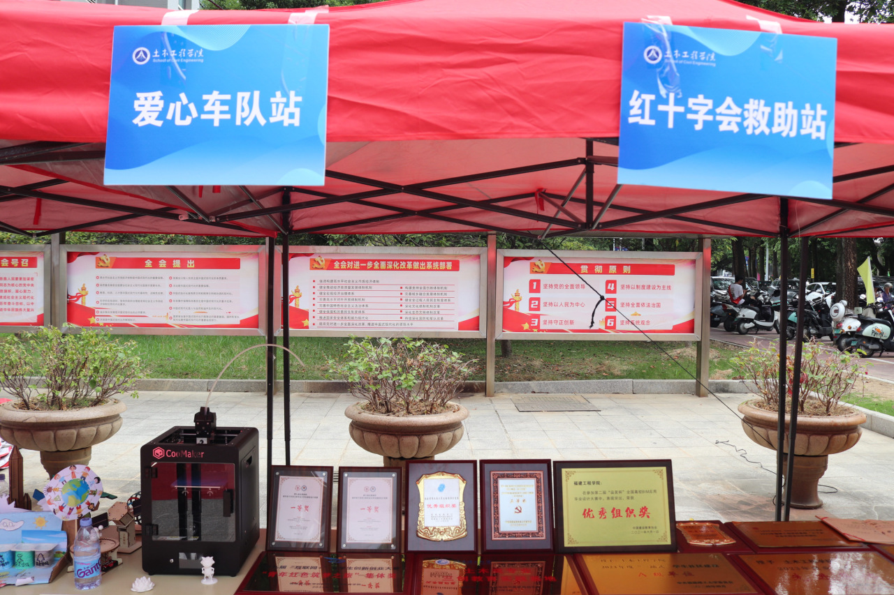 我院精心布局,設(shè)立了多個(gè)特色區(qū)域:科創(chuàng)展示區(qū),讓創(chuàng)新的火花在這里碰撞;服務(wù)區(qū),包含愛(ài)心車(chē)隊(duì)站、黨員先鋒崗、紅十字會(huì)救助站,全方位護(hù)航新生活;主題區(qū),彰顯學(xué)院文化與特色;合影區(qū),以特別設(shè)計(jì)的桁架背景圖,定格入學(xué)的榮耀時(shí)刻;報(bào)到區(qū),高效有序,開(kāi)啟大學(xué)之旅;休息區(qū),為旅途勞頓的學(xué)子提供溫馨港灣。每一處設(shè)計(jì),都旨在讓新同學(xué)們感受到家的溫暖與學(xué)院的關(guān)懷。