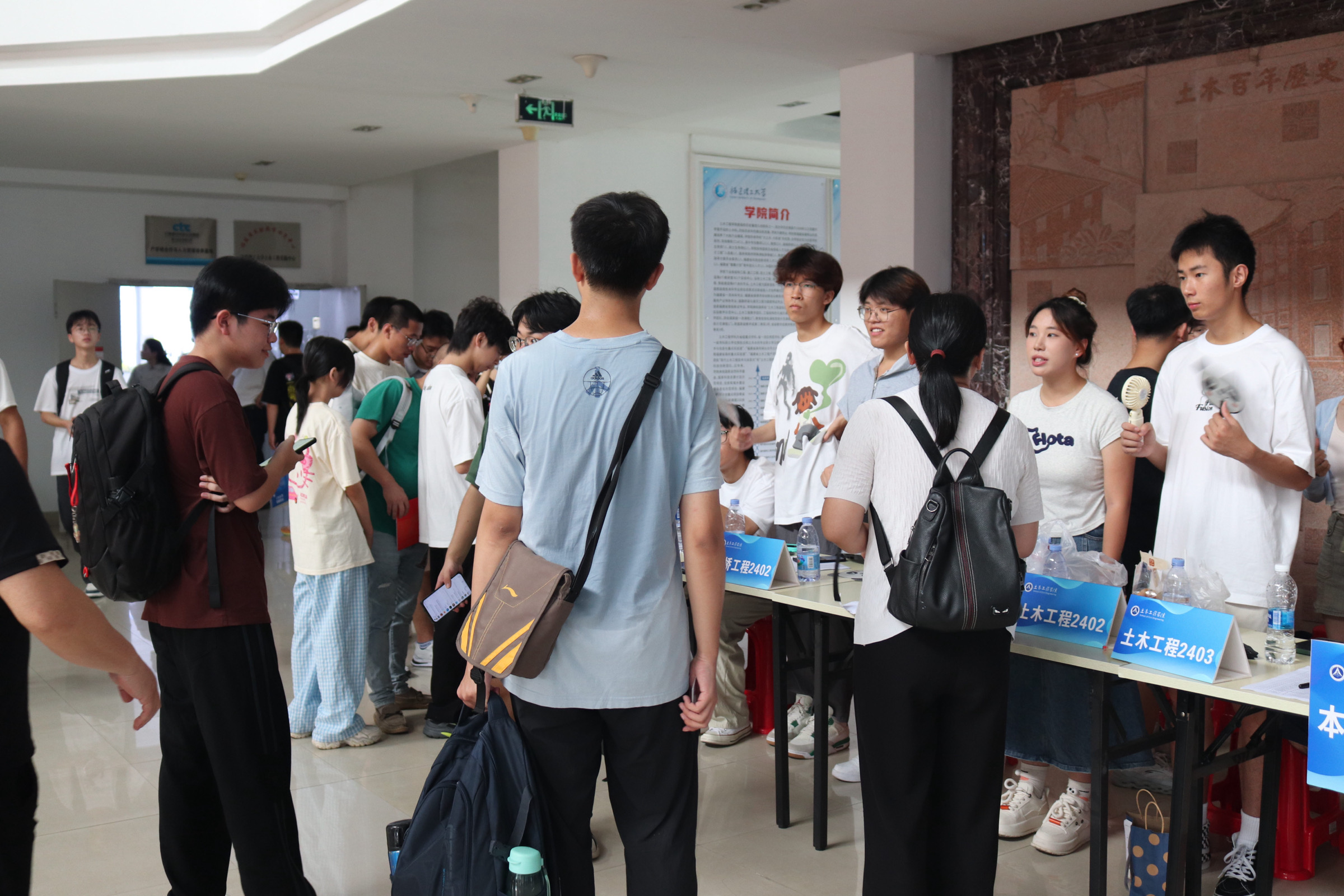 土木工程學(xué)院報(bào)到處洋溢著家一般的溫暖,老師們與志愿者們,如同校園的護(hù)航者,早已精神抖擻,準(zhǔn)備就緒,旨在讓新同學(xué)們感受到像家一樣溫暖的學(xué)院關(guān)懷。他們用細(xì)致入微的關(guān)懷,解答每一個(gè)疑問(wèn),耐心收集著“萌新”們的報(bào)到資料,一絲不茍地進(jìn)行新生信息登記,同時(shí),還熱心地提供路線(xiàn)指引與報(bào)到流程說(shuō)明,確保每一位同學(xué)都能順利開(kāi)啟大學(xué)生活的新篇章。