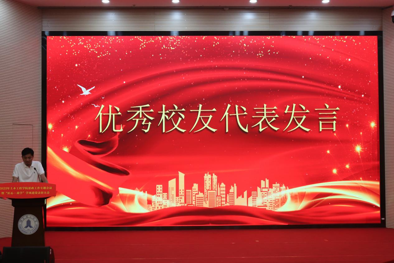 黃志銘在大會(huì)總結(jié)講話中強(qiáng)調(diào),本次大會(huì)既是對(duì)過(guò)往育人成果的總結(jié),更是對(duì)“匠心·尚學(xué)”精神的傳承與發(fā)揚(yáng)。他要求全院師生以黨建為引領(lǐng),筑牢思政育人根基,以學(xué)風(fēng)建設(shè)為抓手,推動(dòng)人才培養(yǎng)質(zhì)量再提升。講話立足學(xué)院發(fā)展實(shí)際,為未來(lái)發(fā)展指明方向。此次活動(dòng)不僅是對(duì)先進(jìn)典型的表彰,更是一場(chǎng)凝聚共識(shí)、催人奮進(jìn)的動(dòng)員大會(huì),激勵(lì)著土木人在新征程中以實(shí)干踐行使命,以創(chuàng)新鑄就輝煌。