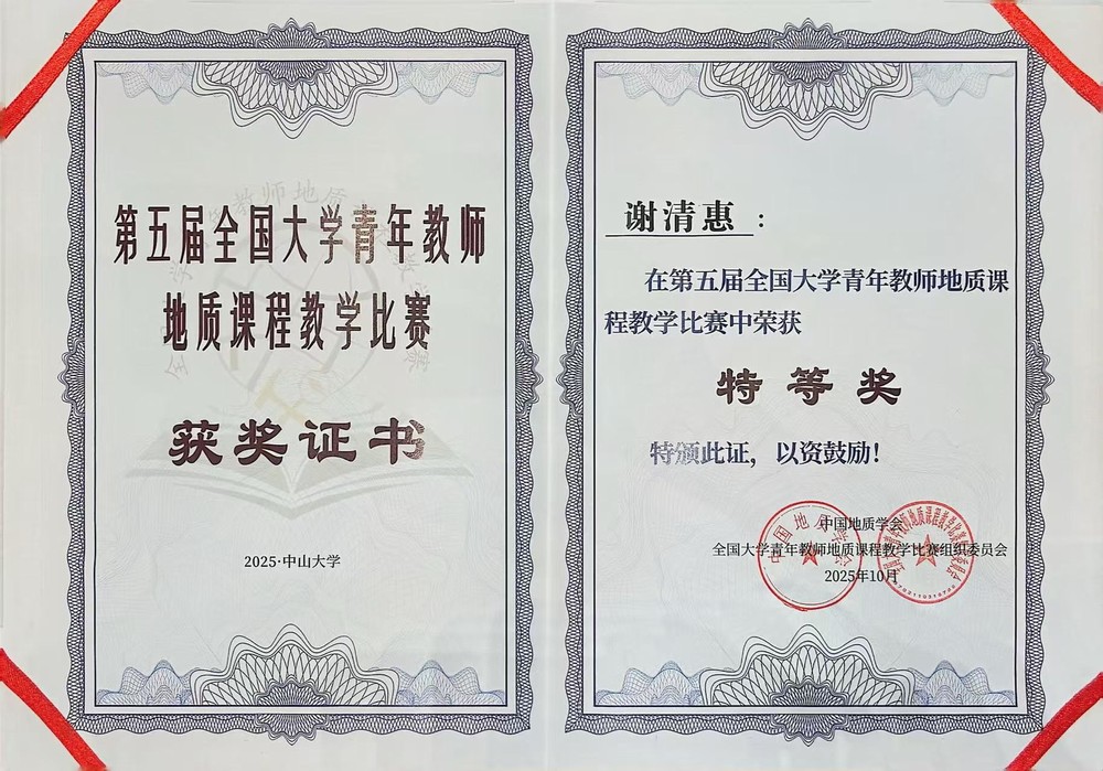 10月24日至26日,第五屆全國(guó)大學(xué)青年教師地質(zhì)課程教學(xué)比賽在珠海舉行,來(lái)自全國(guó)68所高等院校的160余名青年教師同臺(tái)競(jìng)技。我院教師謝清惠憑借優(yōu)異表現(xiàn),榮獲大賽特等獎(jiǎng),充分展現(xiàn)了我院青年教師扎實(shí)的教學(xué)功底、先進(jìn)的教學(xué)理念和良好的專業(yè)素養(yǎng)。