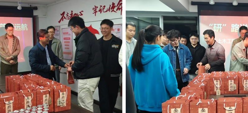 冬日已至,考研在即。為鼓勵(lì)正在全力備考的學(xué)子,12月11日,土木工程學(xué)院在一站式學(xué)生社區(qū)“砼心緣”協(xié)同育人中心開(kāi)展“研路送暖,筑夢(mèng)遠(yuǎn)航”的考研慰問(wèn)活動(dòng),院長(zhǎng)王剛、院黨委副書(shū)記陳慶周、院長(zhǎng)助理周宇、輔導(dǎo)員為同學(xué)們送上精心準(zhǔn)備的“暖心禮包”,傳遞學(xué)院的溫暖與支持。